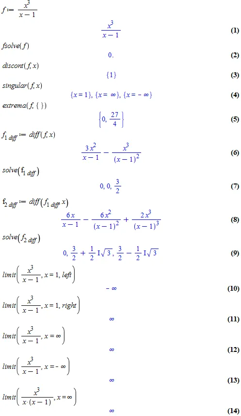 За допомогою функції fsolve легко знаходяться значення незалежної змінної x функцій виду f(x), за яких f(x)=0 (корені цього рівняння). При цьому ця функція дає змогу (на відміну від функції solve) ізолювати корені функції f(x) із зазначенням приблизного інтервалу їхнього існування. Низка функцій слугує для обчислення екстремумів, максимумів і мінімумів функцій, а також для визначення їхньої безперервності.