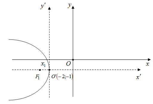 Звідси слідує, що дана лінія є парабола, вершиною якої є точка $${O^{\prime}}(-2;-1)$$. Вона направлена у від’ємному напрямі осі $${O^{\prime}}{x^{\prime}}$$ і симетрична відносно цієї осі.