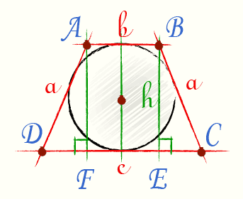 У рівнобічну трапецію вписано коло радіуса $$7.5$$ см. Бічна сторона трапеції дорівнює 17 см. Знайдіть довжину більшої основи трапеції.