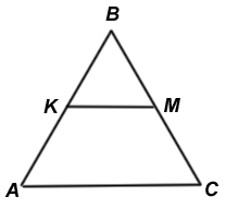 Кількість балів: 1На рисунку зображено рівносторонній трикутник $$ABC,$$ $$KM$$ – його середня лінія. Периметр трикутника $$KBM$$ дорівнює 12 см. Визначте периметр чотирикутника $$AKMC.$$