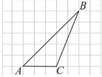 Кількість балів: 1На папері у клітинку зображено трикутник $$ABC,$$ вершини якого збігаються з вершинами клітинок (див. рисунок). Знайдіть площу трикутника $$ABC,$$ якщо кожна клітинка є квадратом зі стороною завдовжки 1 см.