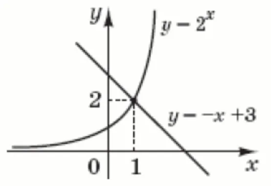Кількість балів: 1Використовуючи зображені на рисунку графіки функцій, розв’яжіть нерівність $$2^x>-x+3.$$