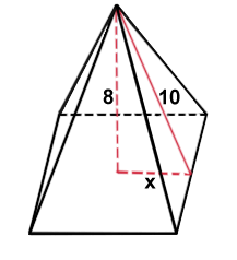 З прямокутного трикутника за теоремою Піфагора (див. рисунок) знайдемо $$x$$, який дорівнює половині сторони основи правильної чотирикутної піраміди