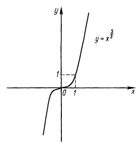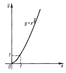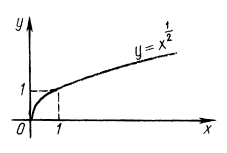 Така степенева функція має нуль в початку координат, а її графік проходить через точку $$(1;1).$$ При парному $$n$$ степенева функція $$y=x^{\frac{m}{n}}$$ визначена на множині $$[0;\infty),$$ а при непарному $$n$$ – на множині $$\mathbb{R}$$ всіх дійсних чисел.