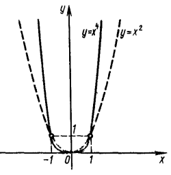 Графік функції $$y=x^n$$ проходить через точку $$(1;1)$$ і дотикається осі абсцис у початку координат.