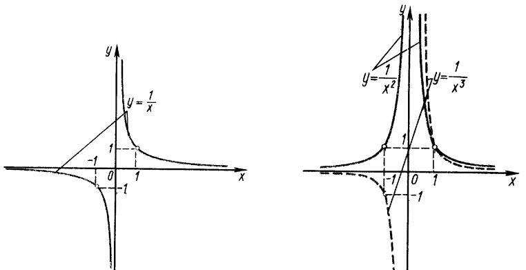 Така степенева функція визначена при $$x\in(-\infty;0)\cup(0;\infty).$$ Графік функції $$y=\frac{1}{x^n}$$ проходить через точку $$(1;1).$$