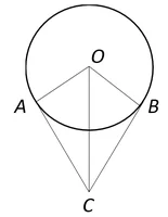 З першого властивості випливає, що трикутники $$\triangle OAC$$ та $$\triangle OBC$$ прямокутні $$\left ( \angle OAC=\angle OBC=90^{\circ} \right ).$$ $$OA,AC$$ та $$OB,BC$$ – катети, $$OC$$ – гіпотенуза.