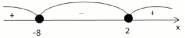 Отримали нерівність: $$(x+8)(x-2)\leqslant 0$$
