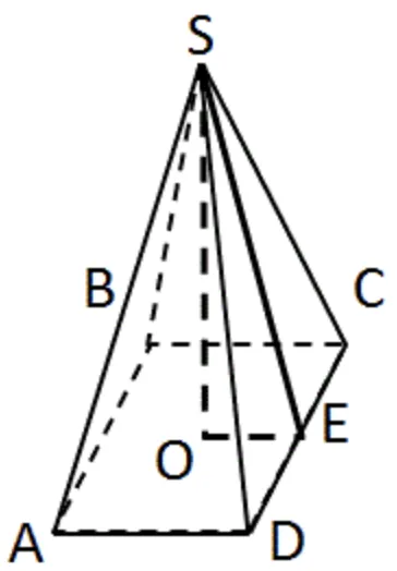 $$SABCD$$ – чотирикутна піраміда, $$ABCD$$ – ромб, $$\alpha=\angle BAD=30^{\circ},$$ $$\beta =\angle OES=60^{\circ},$$ $$r=3$$ (Дякую Viktor Zadvorski за вказівку на помилку в рішенні: $$r\neq OE)$$