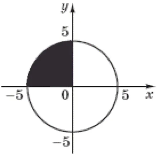Обчисліть $$\frac{1}{\pi}\int_{-5}^{0}\sqrt{25-x^2}dx,$$ використовуючи рівняння кола $$x^2+y^2=25,$$ зображеного на рисунку.