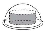 Для розігрівання в мікрохвильовій печі рідких страв використовують посудину у формі циліндра, радіус основи якого дорівнює 9 см. Посудину ставлять на горизонтальний диск у формі кола і накривають кришкою, що має форму півсфери (див. рисунок). Радіус півсфери дорівнює 12 см і є меншим, ніж радіус кола.