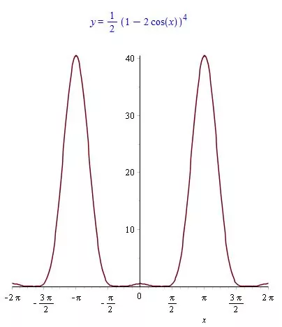 $$y=\frac{(1-2\cos x)^4}{2}.$$