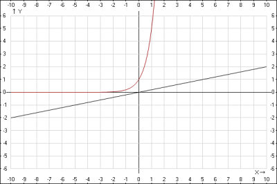 2. Пряма $$y=\frac{x}{5}$$ і показникова функція $$y=5^x$$ не мають спільних точок, тобто відповідь А